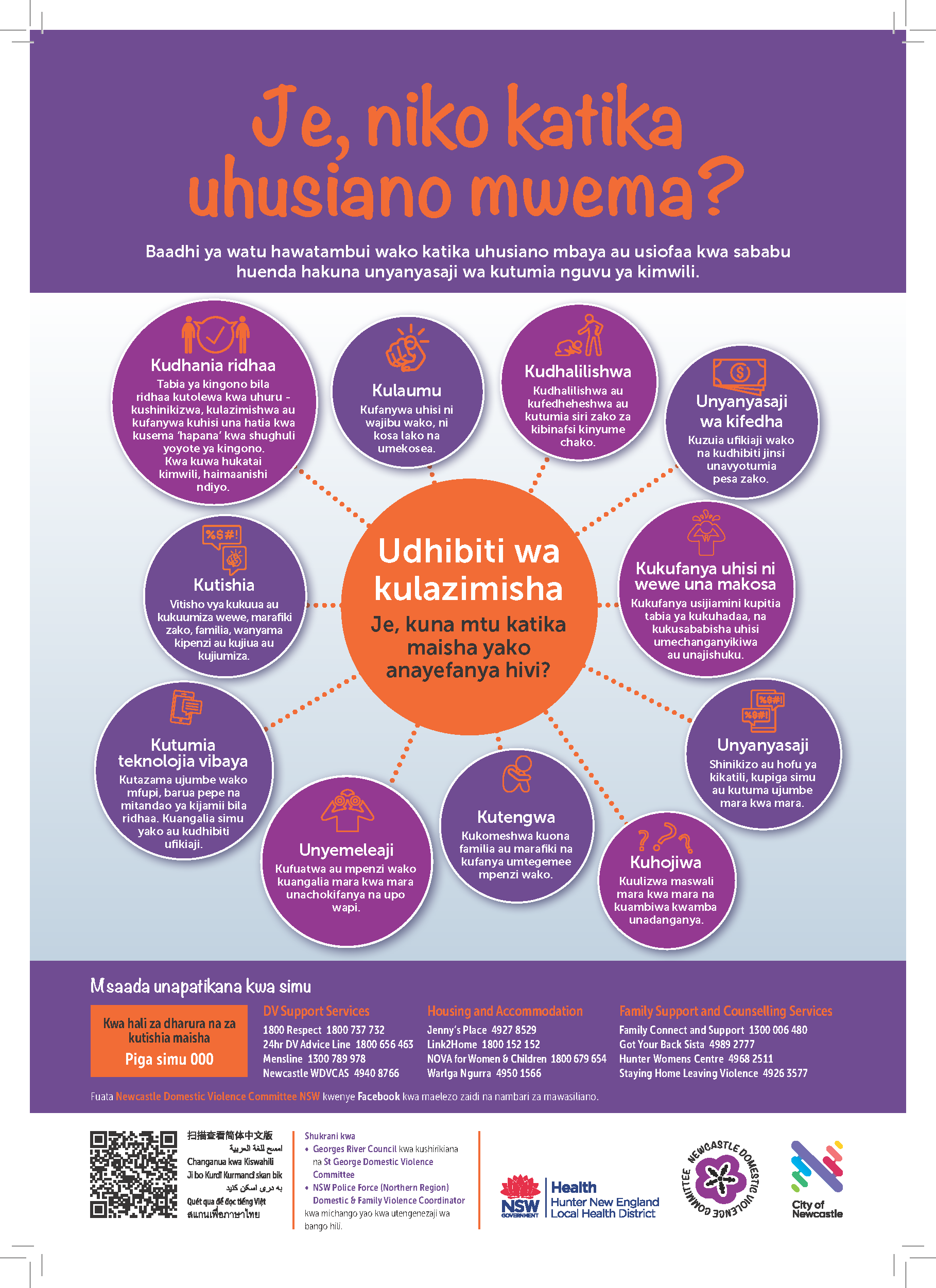 Thanks to Georges River Council in partnership with St Georges Domestic Violence Committee, NSW Police Force (Northern Region) DFV Coordinator, HNE Health, Newcastle Domestic Violence Committee, and City of Newcastle for their contribution to this resource.